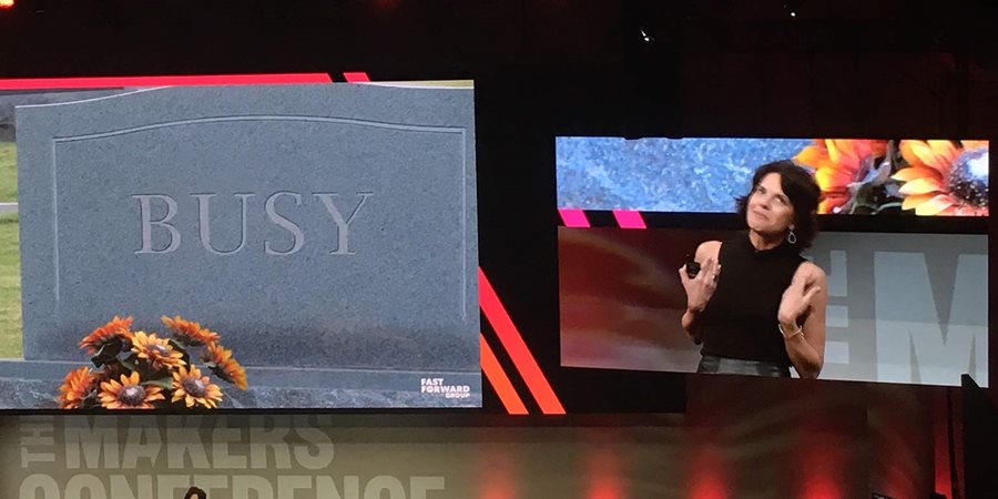 Lisa McCarthy, founder and CEO of Fast Forward Group, led a vision writing session. She shared her motivation for changing her personal mission statement: “I asked my family, friends, and colleagues what they would put on my tombstone, and most people said ‘busy.’ That was not okay. I cannot have ‘busy’ on my tombstone. I had to radically change my behaviors and practice being the person I wanted described at my eulogy. I’ve worked my way up to ‘Overly fulfilled.’”