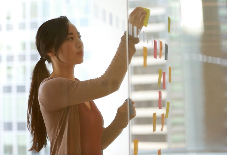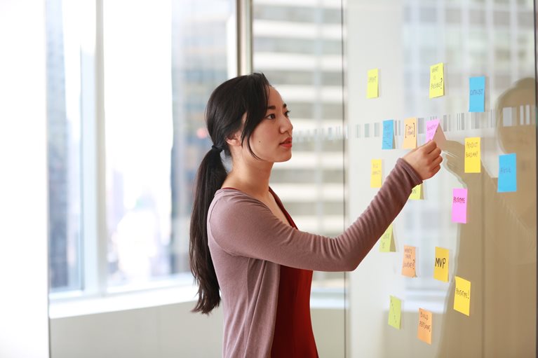 I walked into the room and was surprised to see sticky notes, markers, and tape scattered on the table.
