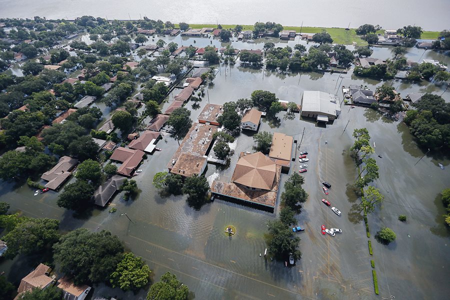 Port Arthur, Texas, saw flooding after Hurricane Harvey hit the area in 2017. More than 6,200 distribution poles and 850 transmission structures were knocked down or damaged in the storm.